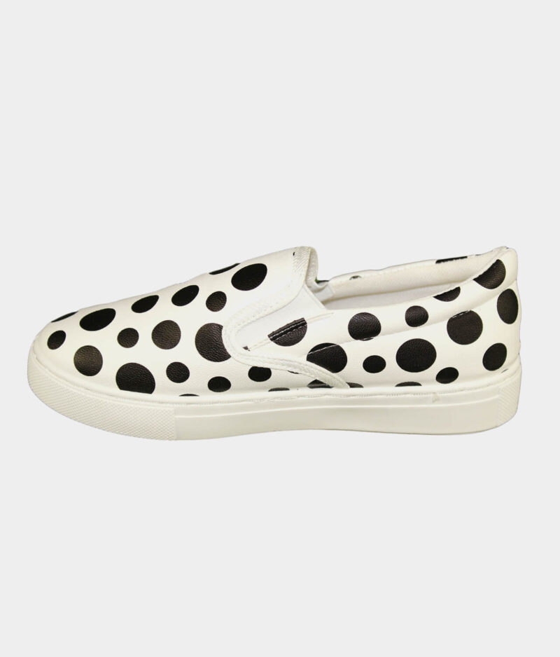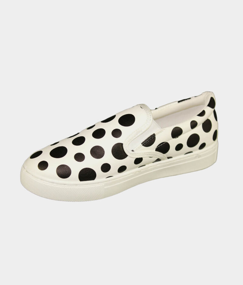 Sneaker Damen weiße Farbe mit schwarzen Punkten.