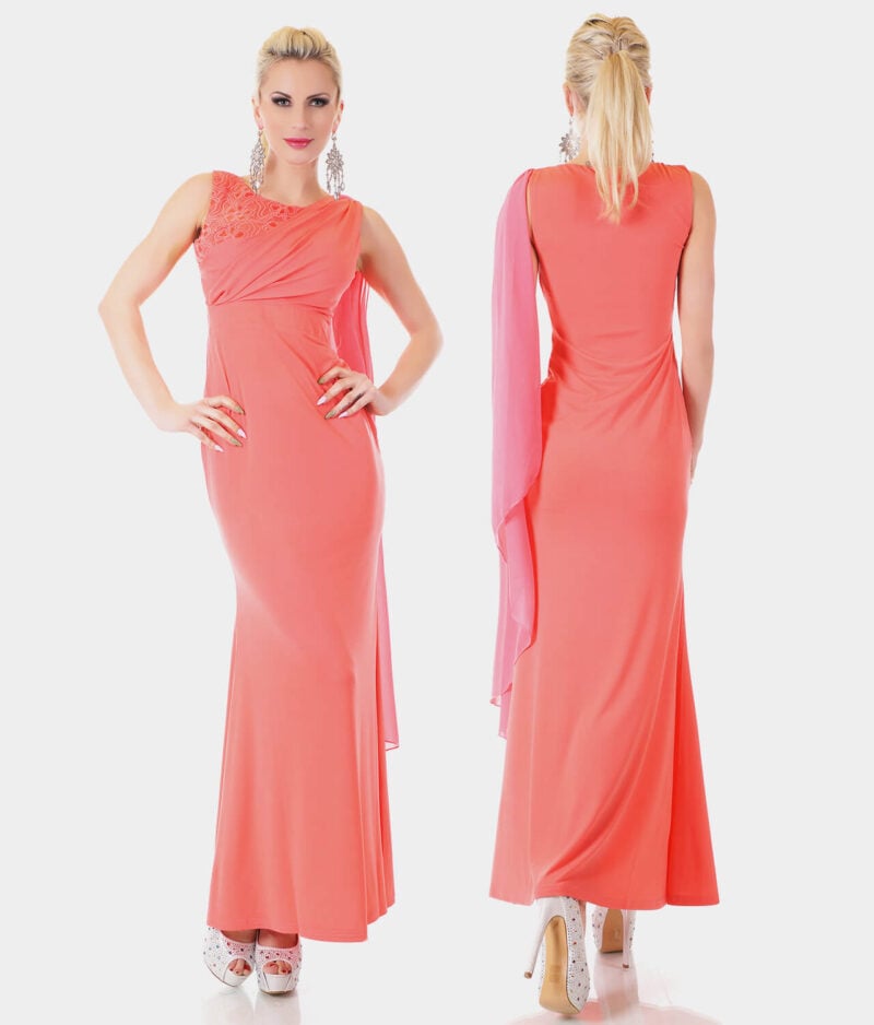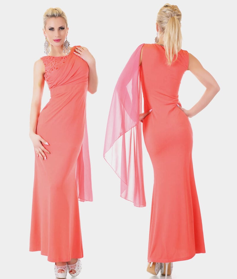 Ženska duga haljina - koraljna boja