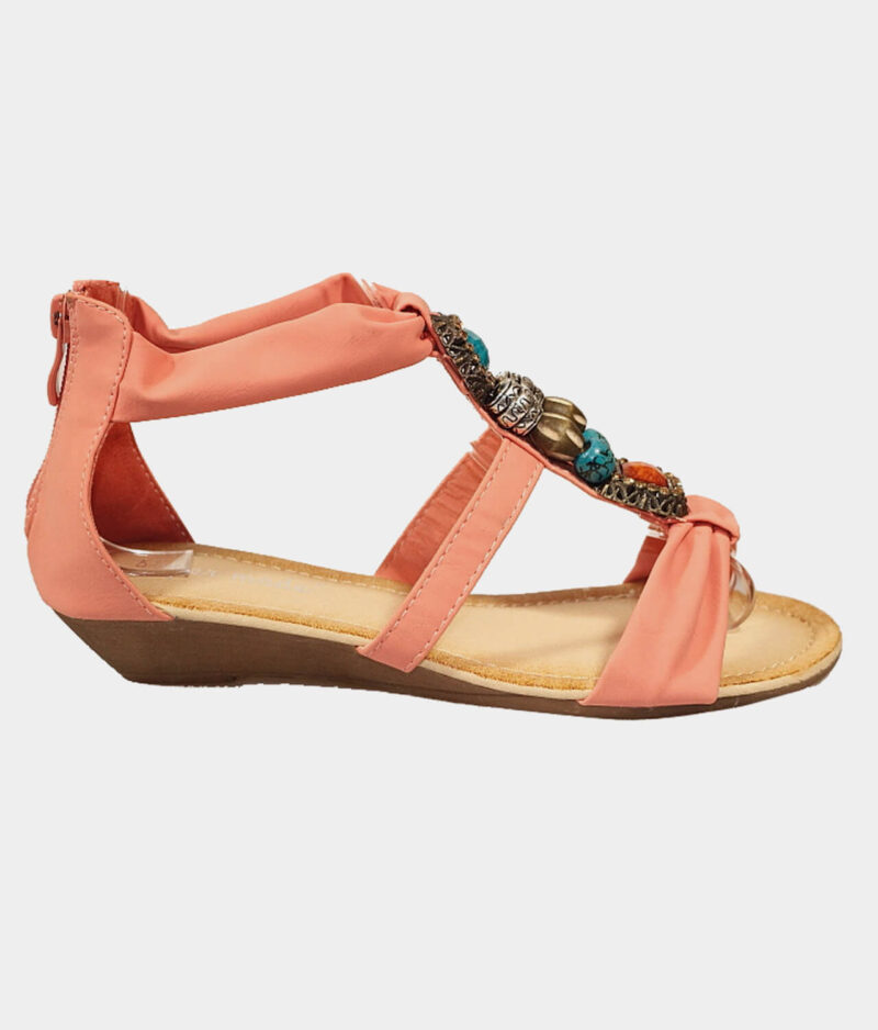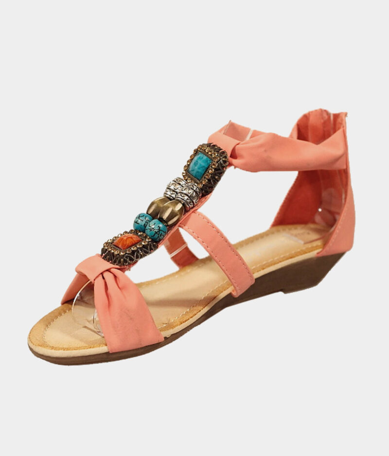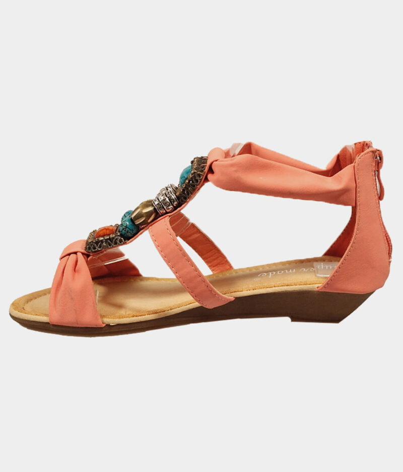 Ženske sandale sa petom i ukrasnim kamenčićima.