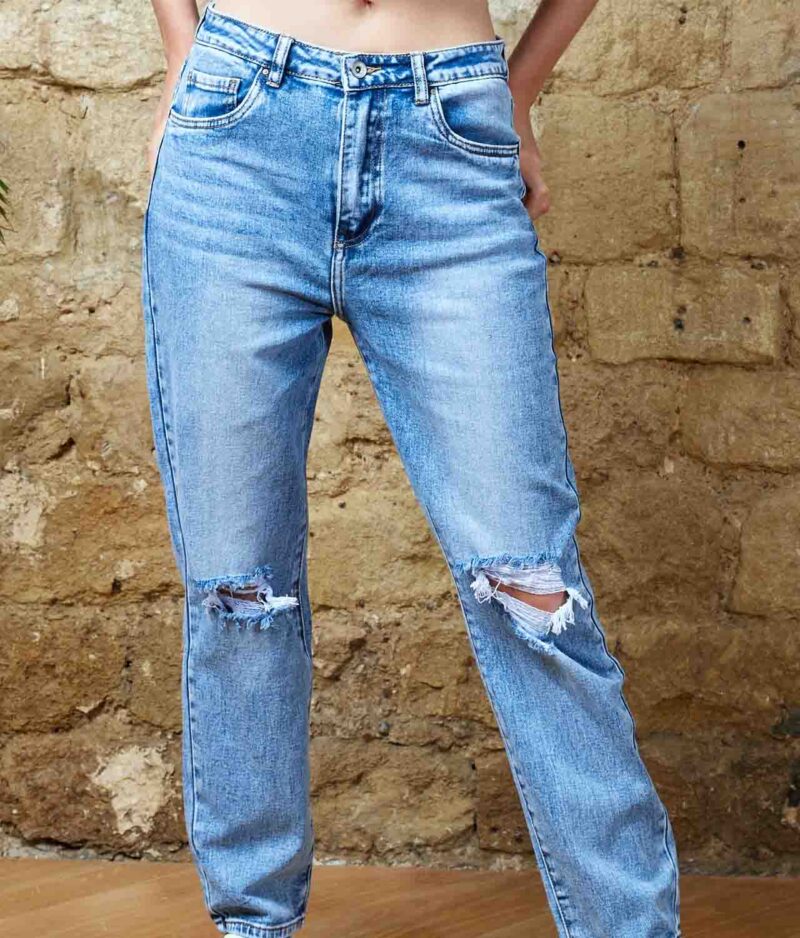 Ženske jeans hlače – boyfriend, raztrganega videza