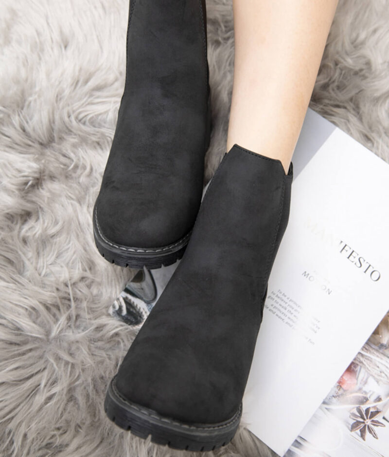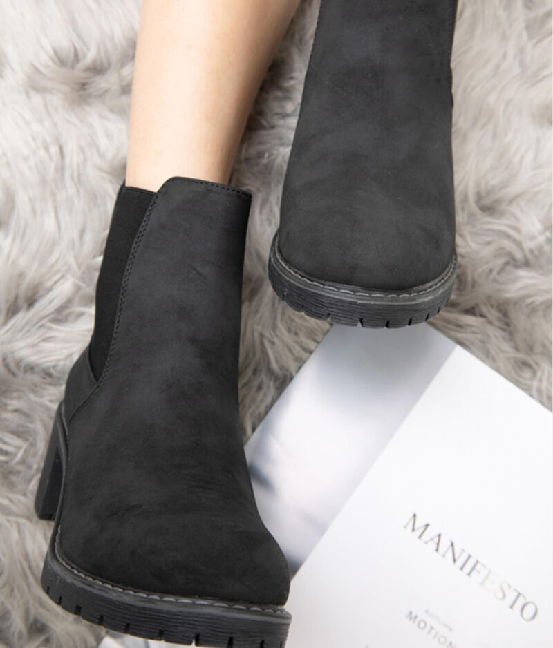 Ženski podloženi škornji s peto v črni barvi.